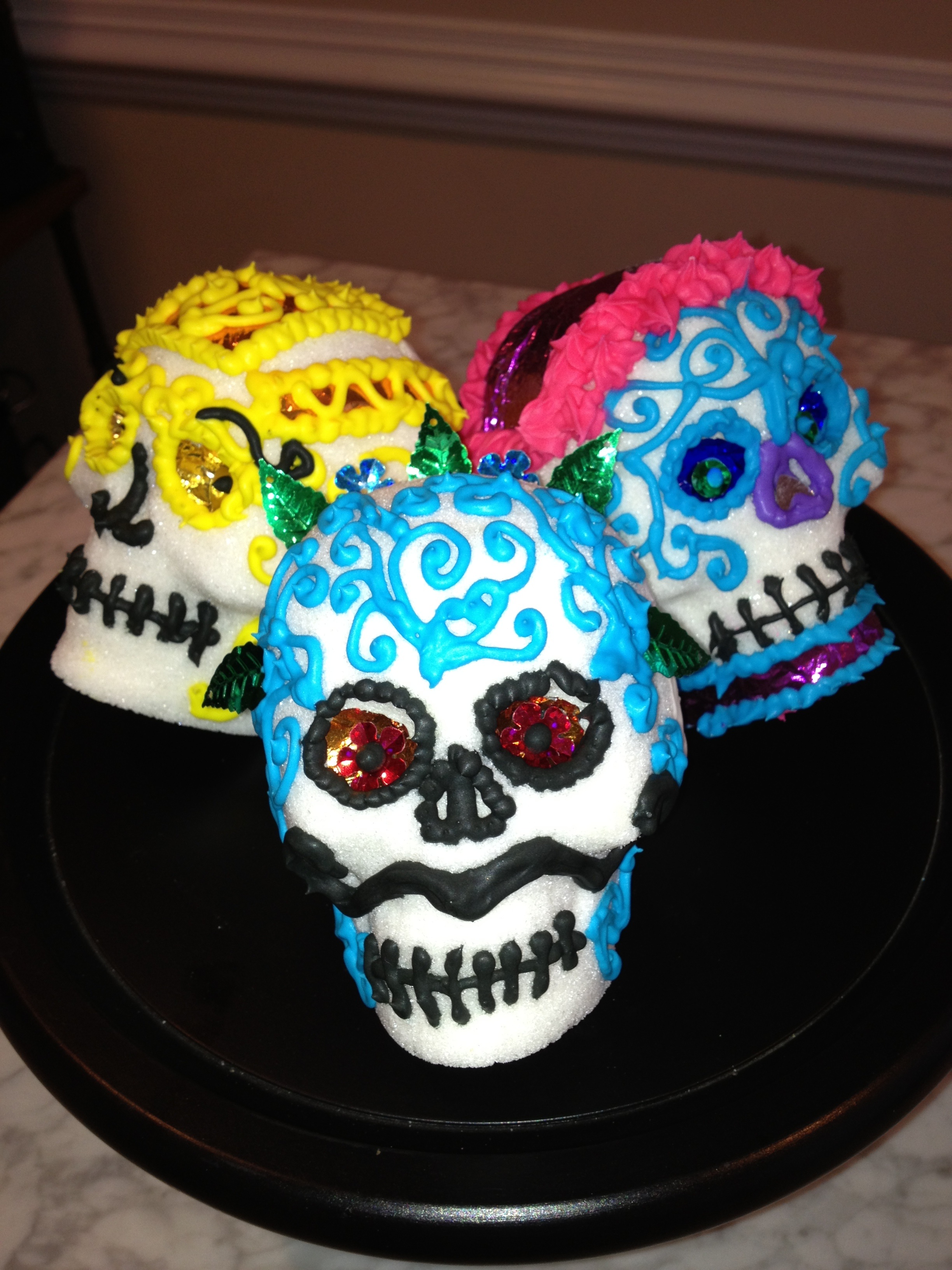 Making your own sugar skulls is really easy, but it does take time and LOTS of granulated sugar. I only made four large skulls and two smalls ones and used  5 pounds of granulated sugar for the skulls and 2 pounds of powdered sugar for the Royal Icing, but your hard work will pay off AND they last for years!