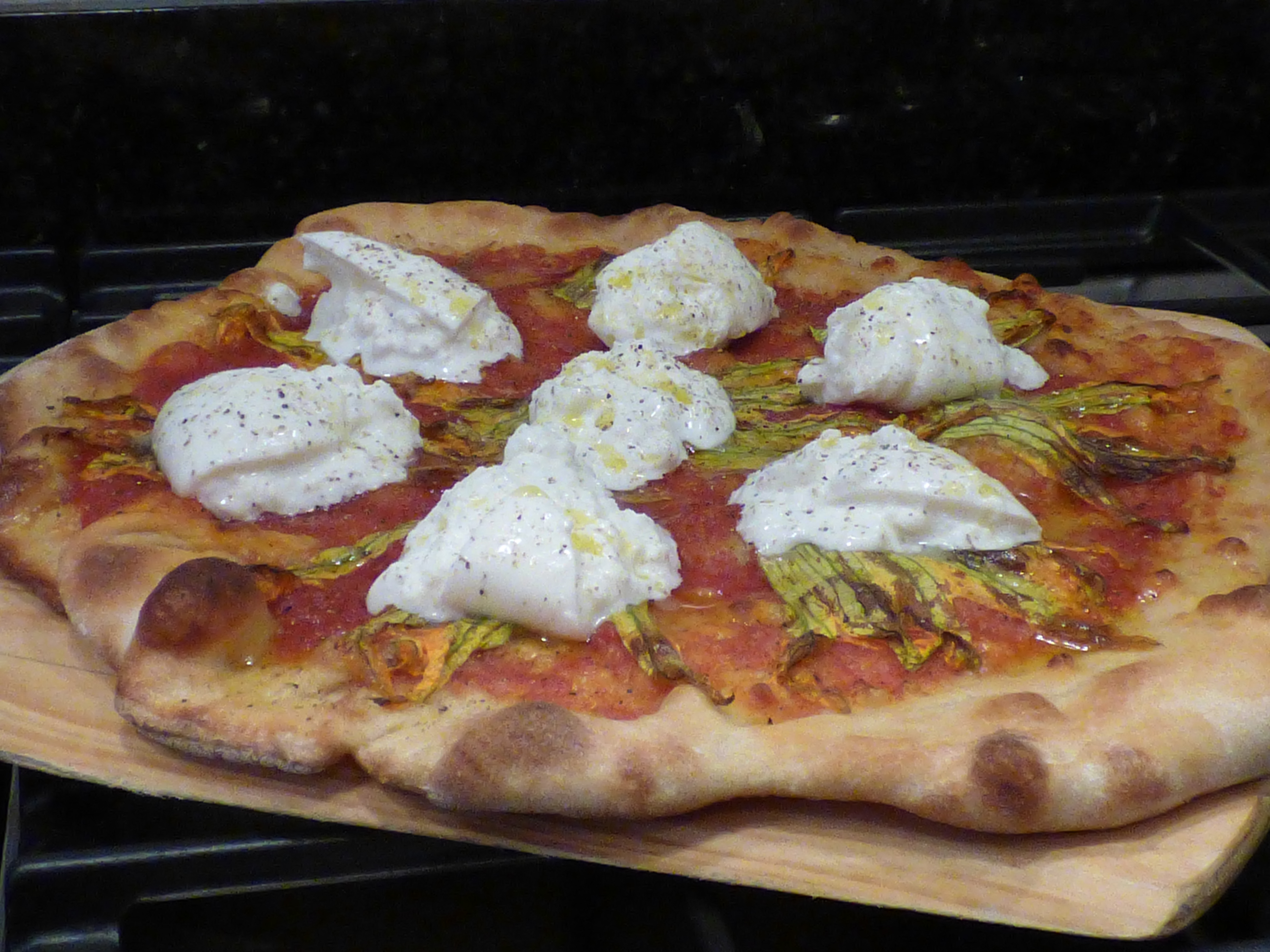 Stay tuned for this weekend’s pizza, squash blossoms, tomato, and burrata.