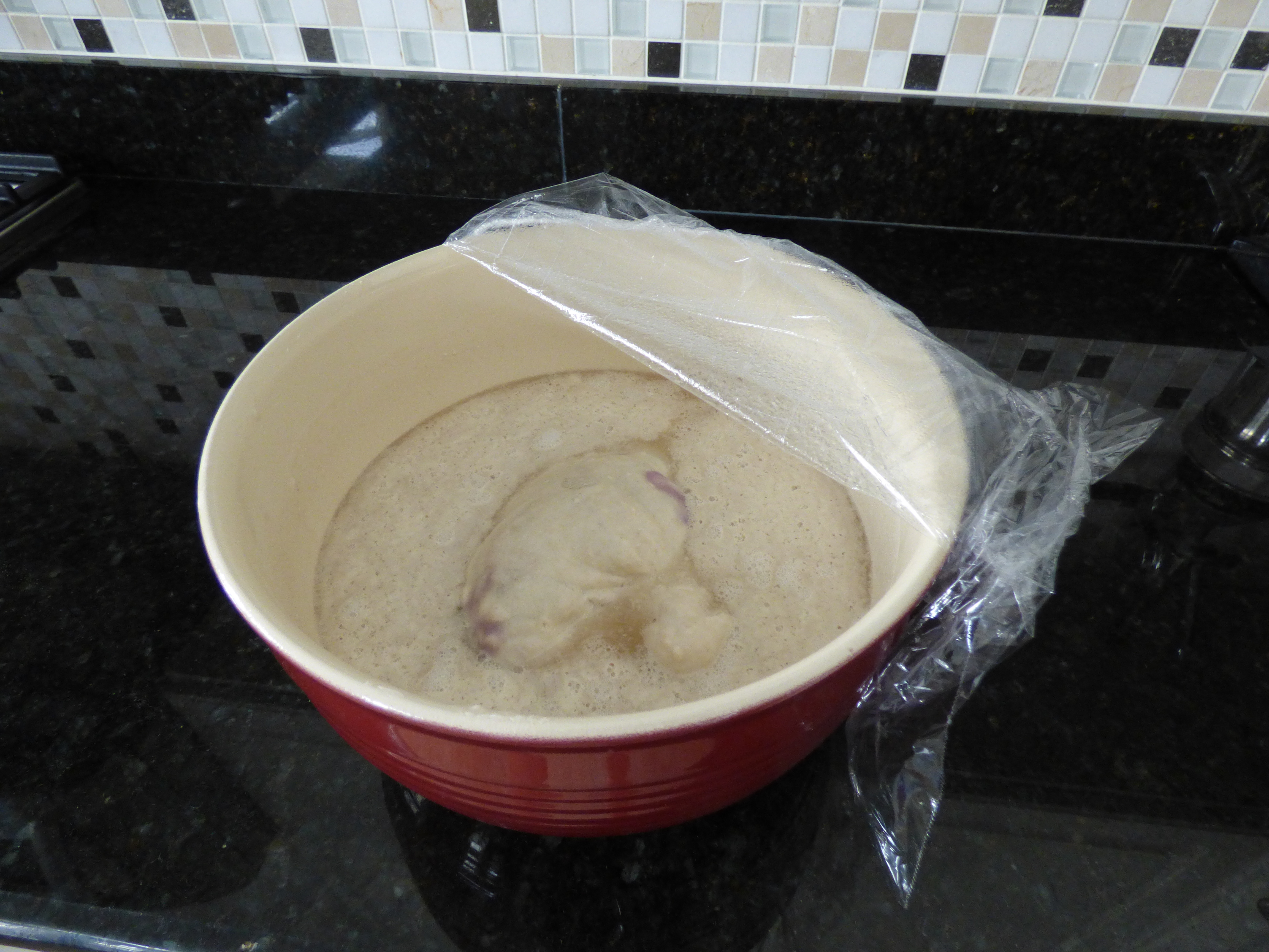Remove the cloth and sprinkle the surface of the dough with flour. Wrap each bowl tightly in plastic wrap. Refrigerate for 8 to 12 hours.