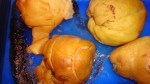 2. Scrub quinces and pat dry. (My quinces had a strange, furry coating that I rubbed off). In a small roasting pan bake quinces, covered with foil, in middle of oven until tender, about 2 hours, and transfer pan to a rack.