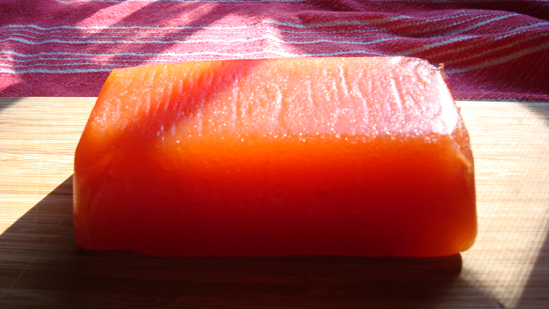 My only alteration to the recipe below is that in step six, you wait until the liquid has turned a deep reddish hue. My quince paste is a little on the pinkish side as opposed to the deep, dark red that it should be. Regardless of the color, it tastes fantastic and was a hit at our Thanksgiving.