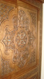 I’ve been relatively good so far, limiting purchases to a couple of camel-hair rugs, some Arabic looking pottery, a brass lantern, a large mosaic, and now a Syrian chest and mirror to place in our foyer back in Old Town. I don’t know much about Syrian furniture, other than what the salesman shared and what I saw, but it seems to be easily identifiable through its use of walnut wood, mother of pearl inlay, and traditional Arabic design.