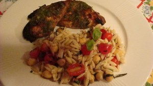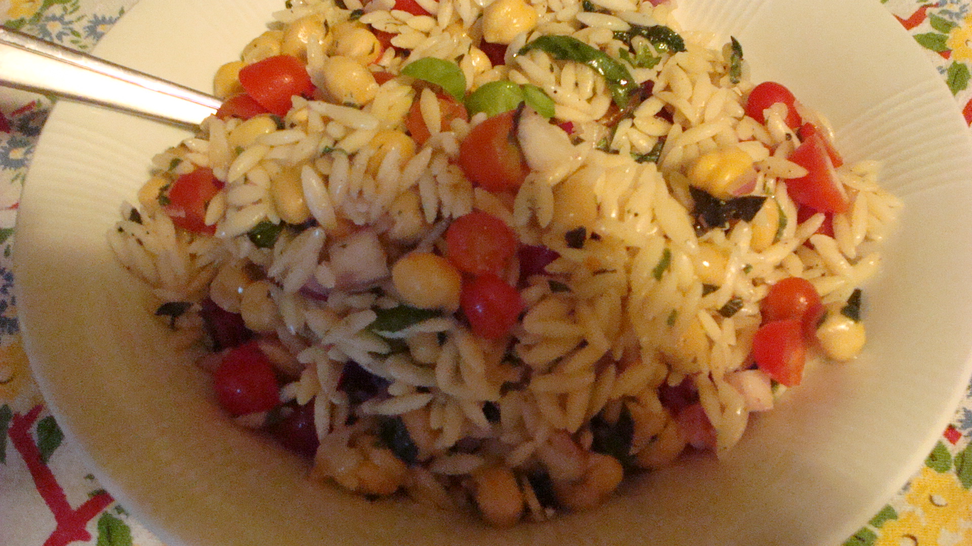 Orzo with Garbanzo Beans, Red Onion, Basil, and Mint