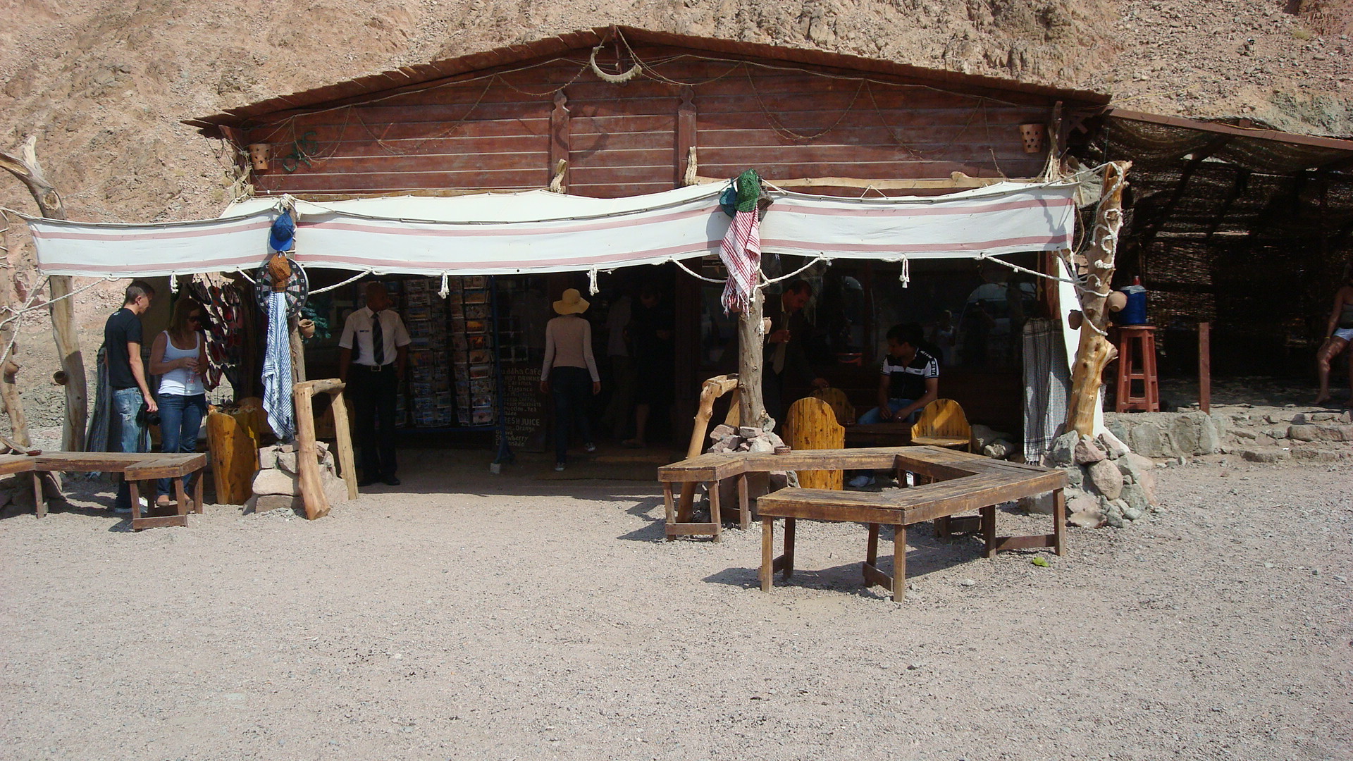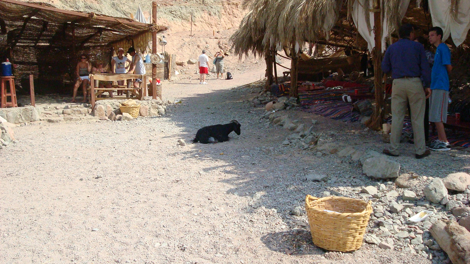 After what seemed like forever getting to the monastery, we parked in a parking lot and were led up a slight incline to the monastery’s entrance. Of course I was dressed inappropriately (as Raj always likes to point out) and was asked to place a scarf around my scantily clad legs. Our guide had forewarned us that there was no talking and no taking pictures inside the chapel. As we entered, it was dimly lit (to protect the icons) but it was extremely difficult to see them. We were given about five minutes to look around and then we were hurried out by the priests. As we exited, the burning bush was to our right. Even more exciting to me at this point on the trip was the WC (wash closet or bathroom) that I saw off in the distance (keep in mind the drive was over three hours long). I excused myself to visit the ‘facilities,’ but couldn’t go. It was a pit toilet. As much as I had to go, I couldn’t. I exited the bathroom telling myself I could hold it (but for how long?). This lasted about two minutes and then I resigned myself to try again. I walked back in, started dismantling my skirt-scarf, which I might add fell off and onto the the WET floor. (OMG, what was the wetness???). As I walked out again, I mentioned that the floor was WET to the woman in line behind me. She said it was just water from the hose. I went back in and there was NO HOSE…Yep, you know what it was and it was now on my scarf and I had to put the scarf back on my legs to cover them up. I went back in for a third time ready to get it over with when a woman from our group (a saint, really) came running in to tell me that the guide said our lunch place had a REAL toilet. I could hold for an hour knowing this and so I wrapped my pee scarf back on and headed out. Twenty minutes later, we were eating lunch in a restaurant and all was well.