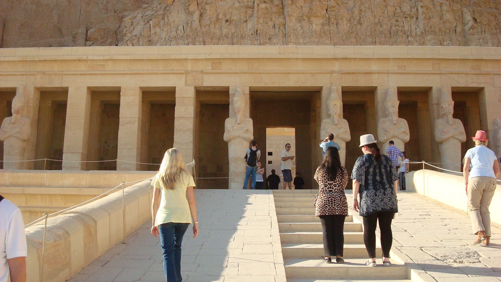 Temple of Hatshepsut: Rising out of the desert plain in a series of terraces, the Temple of Queen Hatshepsut (Ancient Egypt’s only female Pharaoh) merges with the sheer limestone cliffs that surround it.