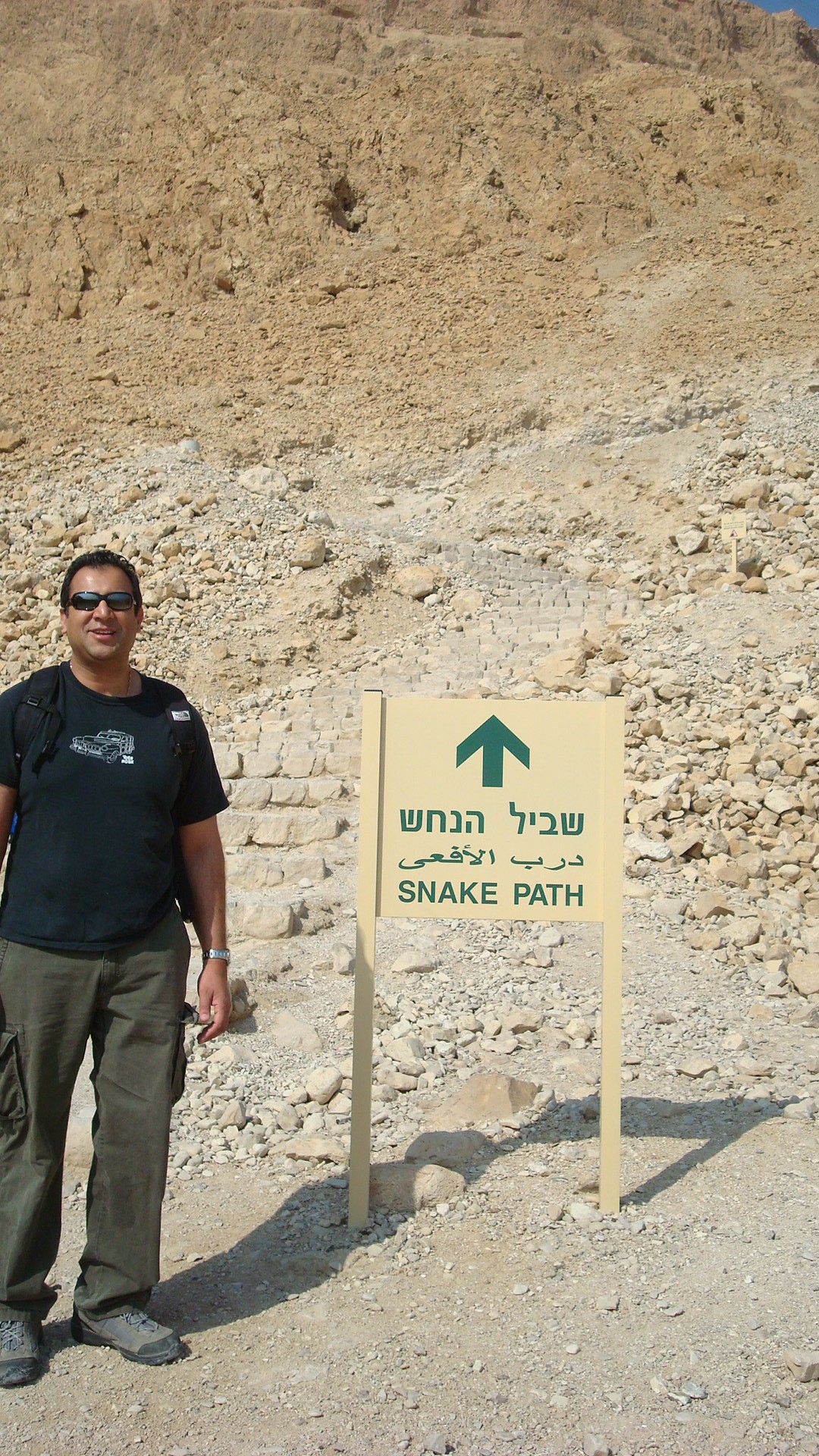 Most visitors here make the pilgrimage to watch the sunrise. We couldn’t book a hotel near enough to make this possible, so we summited in the mid-morning sun, which was fine because it was a great day for it–not too hot. (There’s only one hotel/hostel inside the National Park. If you can’t book a room here, the closest option is about thirty minutes away. Warning: stay away from the Oasis Hotel!). There are three routes to the top of Masada: a cable car (similar to Palm Sprigs’ tram), the Snake Path and the Roman Path. We wanted to hike/walk and took the Snake Path, which was a relatively easy hike that switch-backs up the mountainside along a well maintained trail. It took us a leisurely hour with plenty of water and photo breaks to make it to the top (although I imagine that if you’re hiking in the summer, it has to be much more difficult).